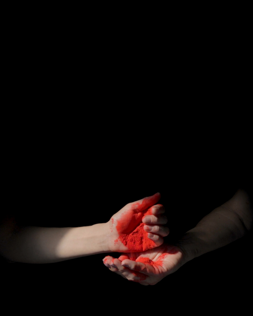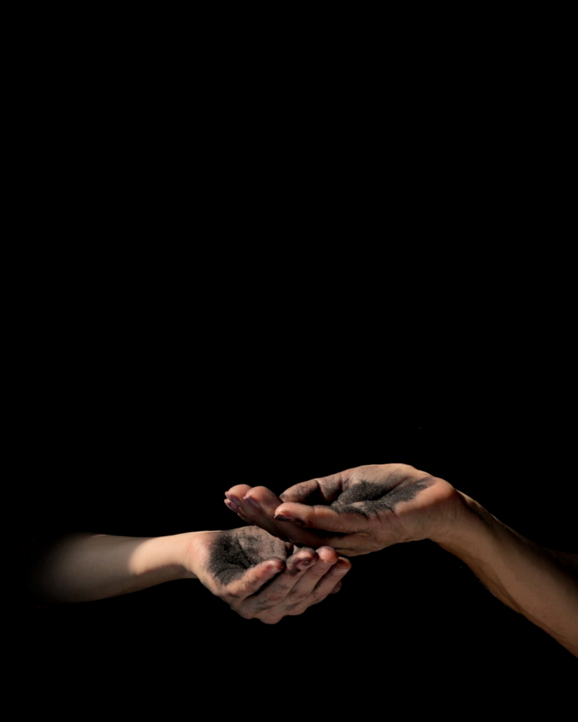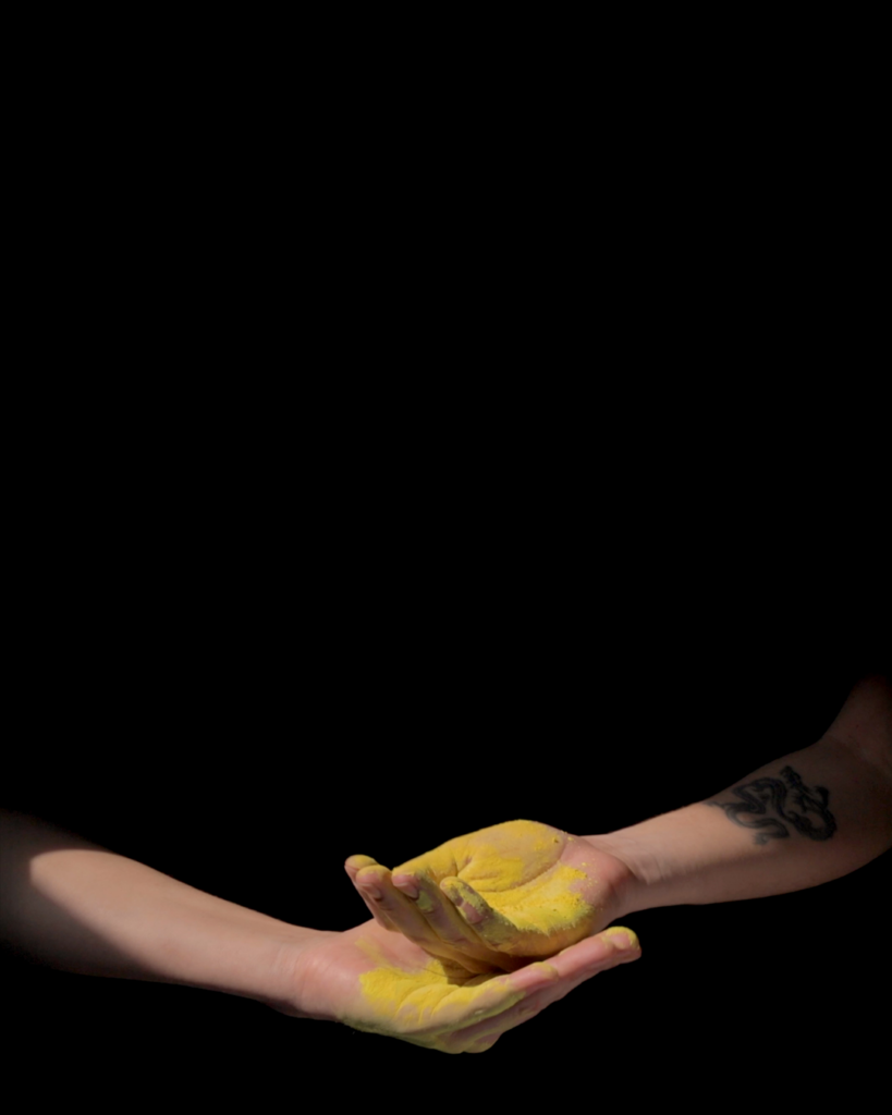 Une série de neuf séquences montre l’échange de divers matériaux entre l’artiste et sa famille proche : sa mère, son père et sa sœur. Filmés sous un faisceau de lumière naturelle qui s’infiltre par la fenêtre dans l’atelier de l’artiste, les gestes accompagnent le mouvement des rayons du soleil à mesure que la matière de l’échange imprègne les mains et s’épuise progressivement à chaque transfert. Autant de tentatives pour retenir la lumière qui évoquent le caractère éphémère des retrouvailles et la réciprocité de la transmission.